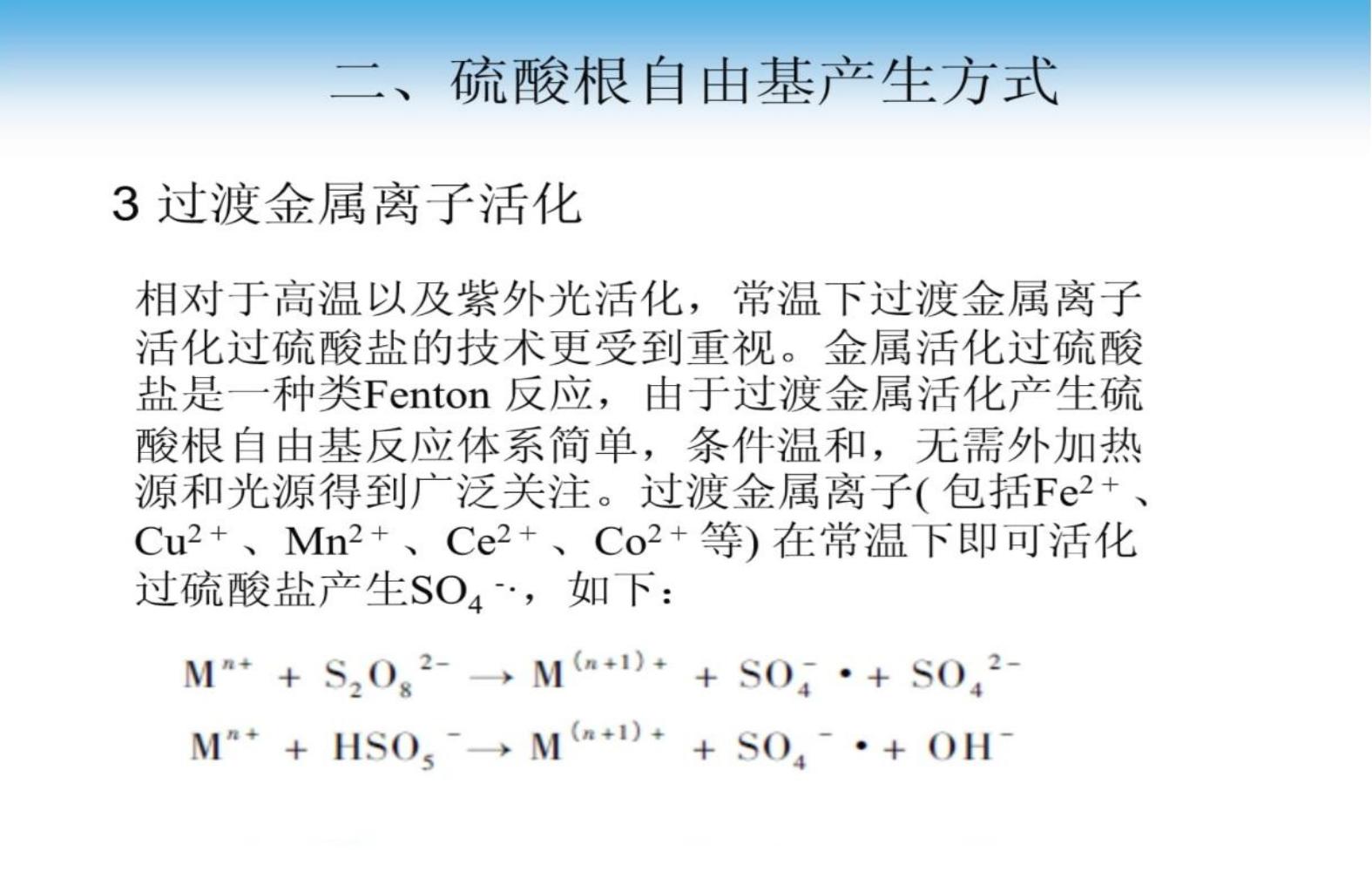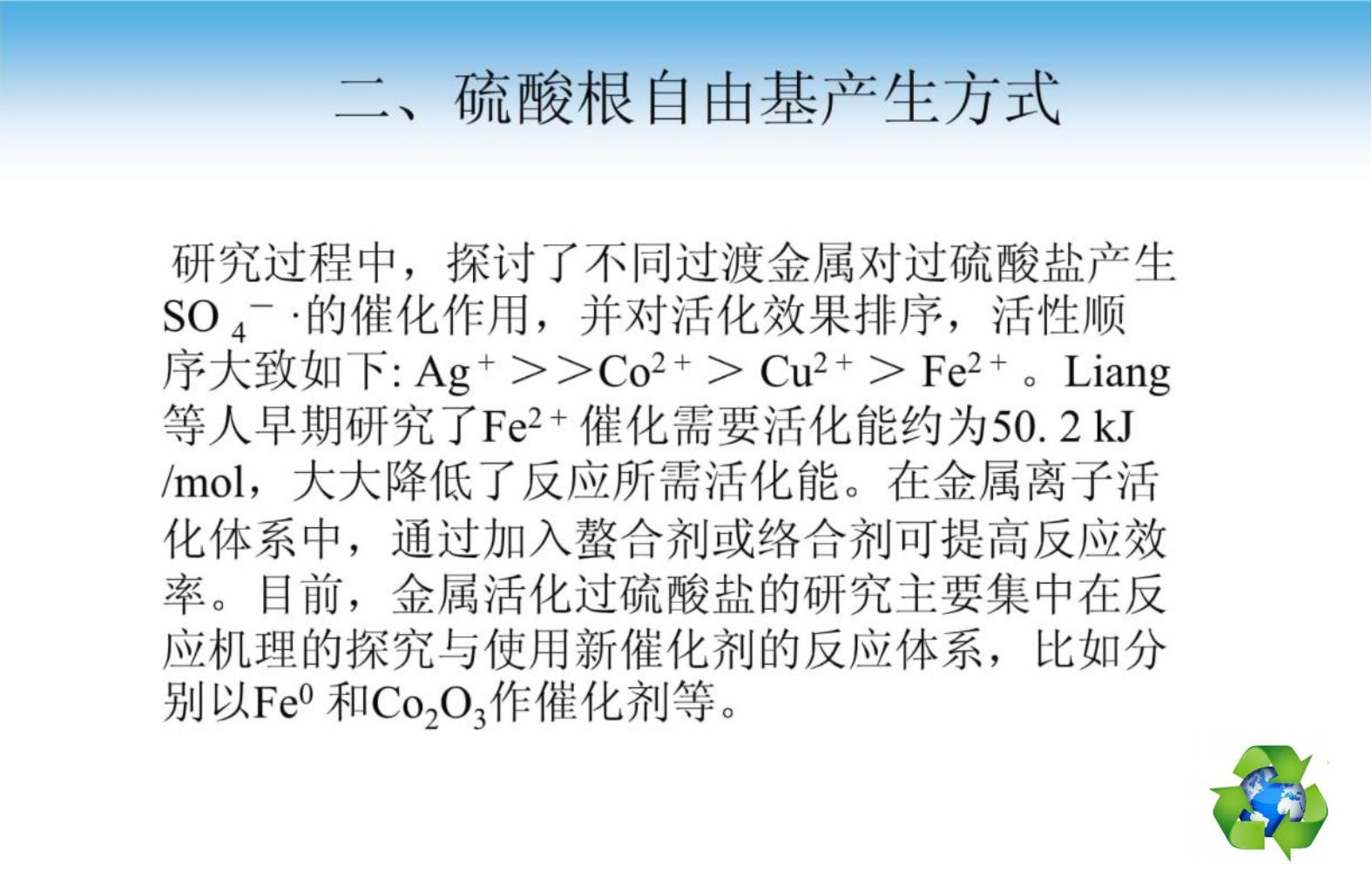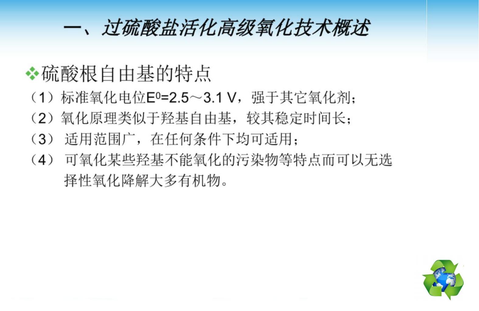 過硫酸鹽活化氧化技術原理及應用