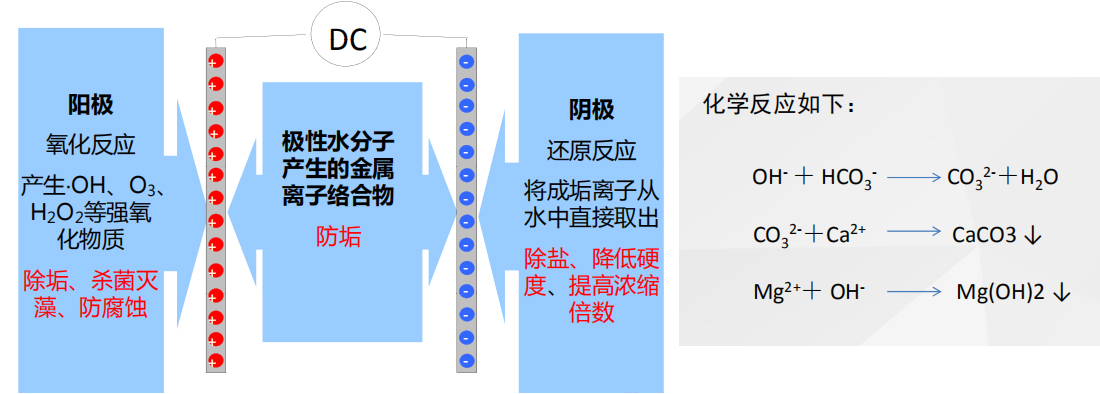 技術(shù)原理:利用電結(jié)晶過(guò)程產(chǎn)生的鈣鎂離子不溶性結(jié)晶物,作為化學(xué)結(jié)晶的凝結(jié)核,可提高化學(xué)結(jié)晶的沉淀速度,減少了化學(xué)結(jié)晶的藥劑消耗。