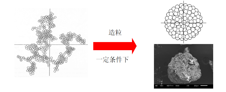 改變絮體顆粒隨機成長模式,增大絮體顆粒粒徑的同時,其密度能基本保持恒定或略有降低,形成致密性絮凝體。通過合理控制混凝化學條件、流體動力學條件,并增設顆粒循環(huán)系統(tǒng),保證設備內造粒區(qū)流化床運行穩(wěn)定性,保證工藝系統(tǒng)能持續(xù)、高效、穩(wěn)定運行。